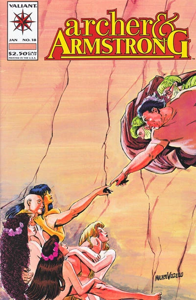 Archer is dead -- drowned while trying to retrieve Armstrong's stolen paintings. While clinically dead, Archer sees a vision of his true mission on Earth. Returning once again from the dead, Archer has a renewed sense of purpose to fight evil and injustice. Shortly thereafter, Archer and Armstrong encounter a girl named Naomi Atkins, and all three are taken prisoner by the madman Duerst.[1]