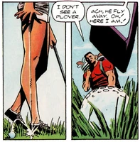 Taken prisoner by Duerst, Archer and Armstrong are kept drugged and put to work at Duerst's macrobiotic farm. There, they are recognized by their former neighbor, Pamela Trice. For reasons of her own, she covertly frees them from the drug's effect. Armstrong then attacks Duerst, who is contained in a portable iron lung, nearly killing the old man before making good his escape.[1]