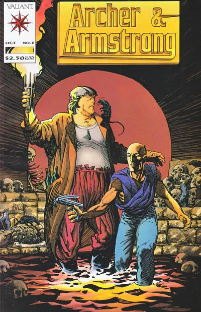 Transported back from the Lost Land, Archer and Armstrong are abducted by Mahmud's Sect troops. They are taken into captivity, leaving Armstrong's magic satchel to be stolen. The pair awaken, chained in a dungeon beneath the Vatican. When they try to escape, they are forced to flee from the Sect pursuit of Mahmud, Constantino the Roman Candle, and those uzi-packing nuns the Sisters of Doom![1]