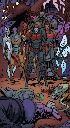 Primary Reebo and his team of Armor Hunters visited the third moon of Binj in their hunt of X-O Manowar Armors. They couldn't kill the armor but lost four hunters. It was their 7th recorded hunt.