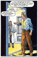 When Phil Seleski finds himself in the past after a horrible incident in which he creates a black hole, he suffers an incident where he literally splits in two. One of these personas is the actual comic book character of Doctor Solar from his childhood. He is a manifestation of Seleski’s overwhelming guilt in destroying the world, combined with his subconscious desire to become his hero. Seleski reabsorbs Doctor Solar during their final conflict.