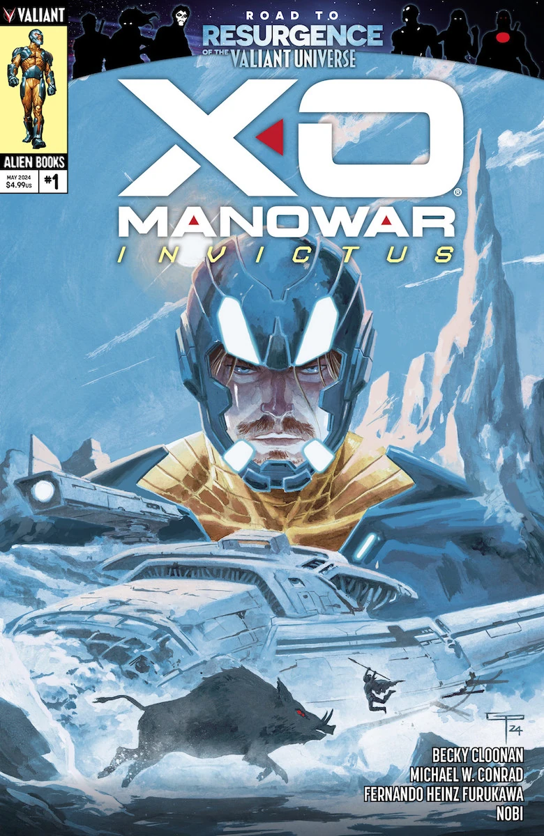 X-O Manowar: Invictus is a four-issue mini-series published by Alien Books (and Valiant Entertainment). It is written by Becky Cloonan and Michael W. Conrad continuing their story from X-O Manowar Unconquered, with both series basically carrying the same title as "invictus" is Latin for "unconquered".